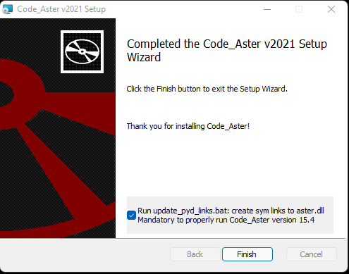 From version 15.2, code_aster needs some symbolic link to be created. These links are related to ntfs partition and cannot be a content of zip archive. For this technical reason, the solver Code_Aster has been separated from Salome-Meca and is available as an msi installer instead of zip archive.